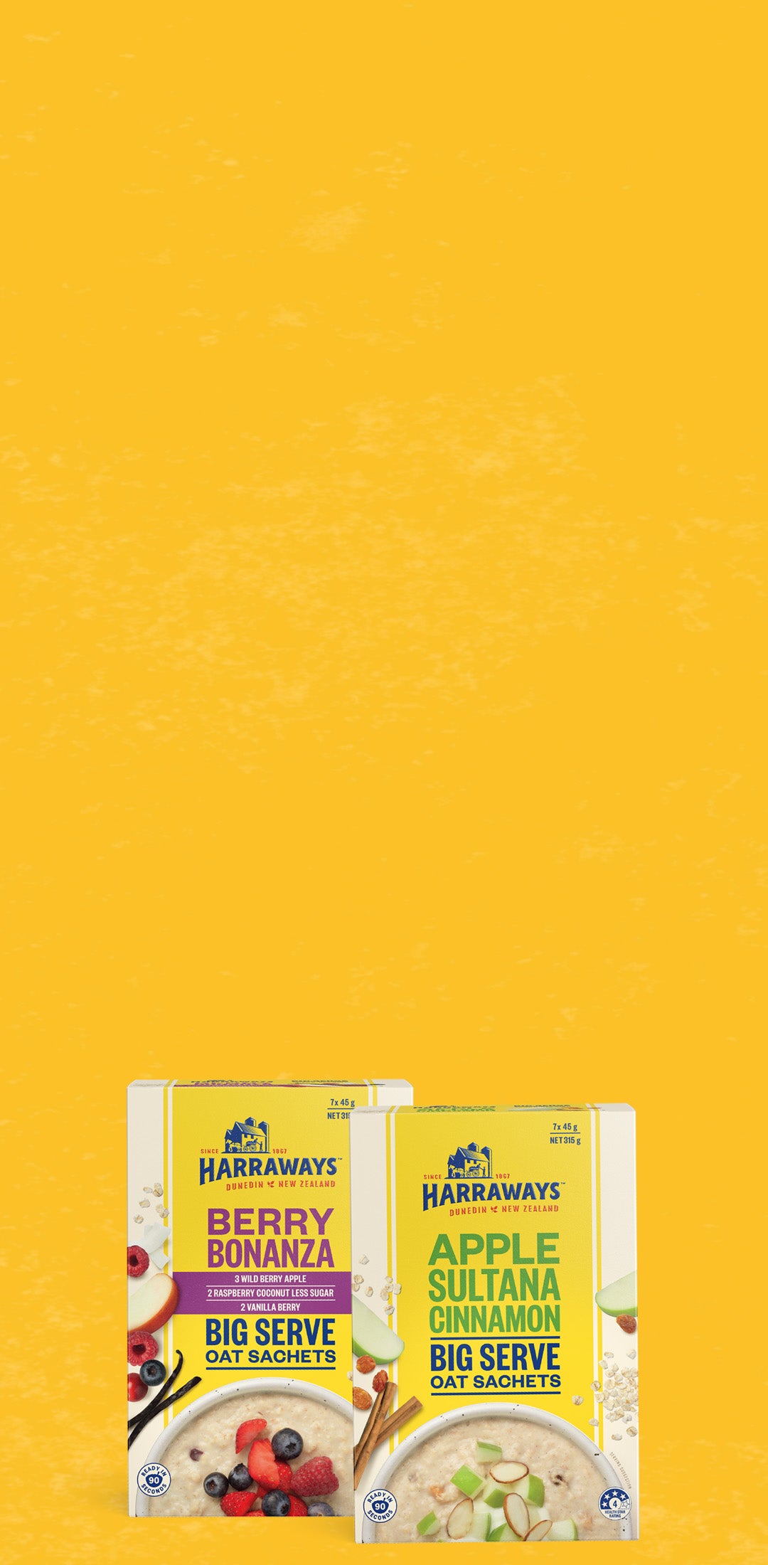 See productsExperience the ultimate convenience with our oat sachets – ready in just 90 seconds. Perfect for those on the go, these sachets offer a hassle-free way to enjoy a nutritious ‘fuel up’ anytime, anywhere. Additionally, our commitment to the planet is reflected in the kerb-side recyclable, less waste packaging. Presented in an array of delicious flavours with specific health benefits on offer! In addition, the sachets in our range offer BIG, Value for Money, 45g ‘Kiwi Sized’ serves!